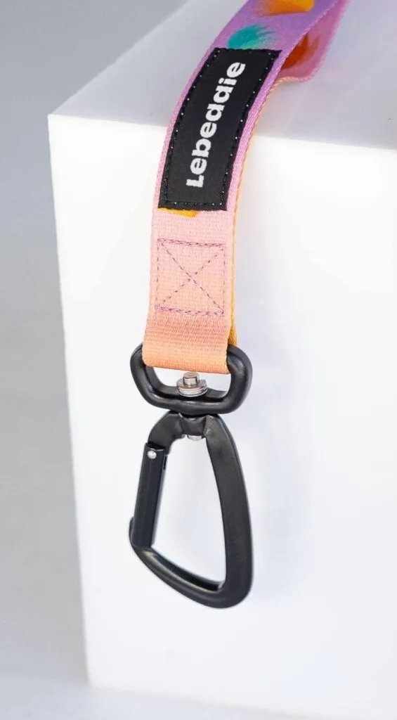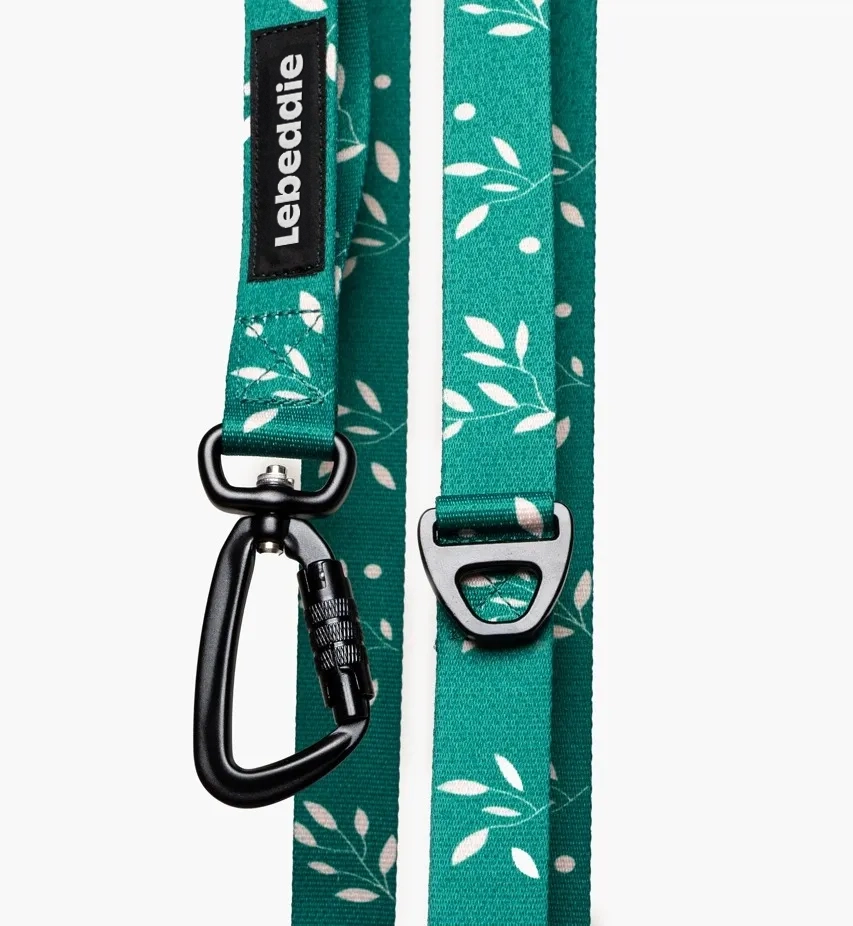 Poznámka k používání: Pro přehlednost na tomto místě uvádíme, že karabina, kterou připínáte k obojku/postroji, je ta s našitým logem Lebeddie.